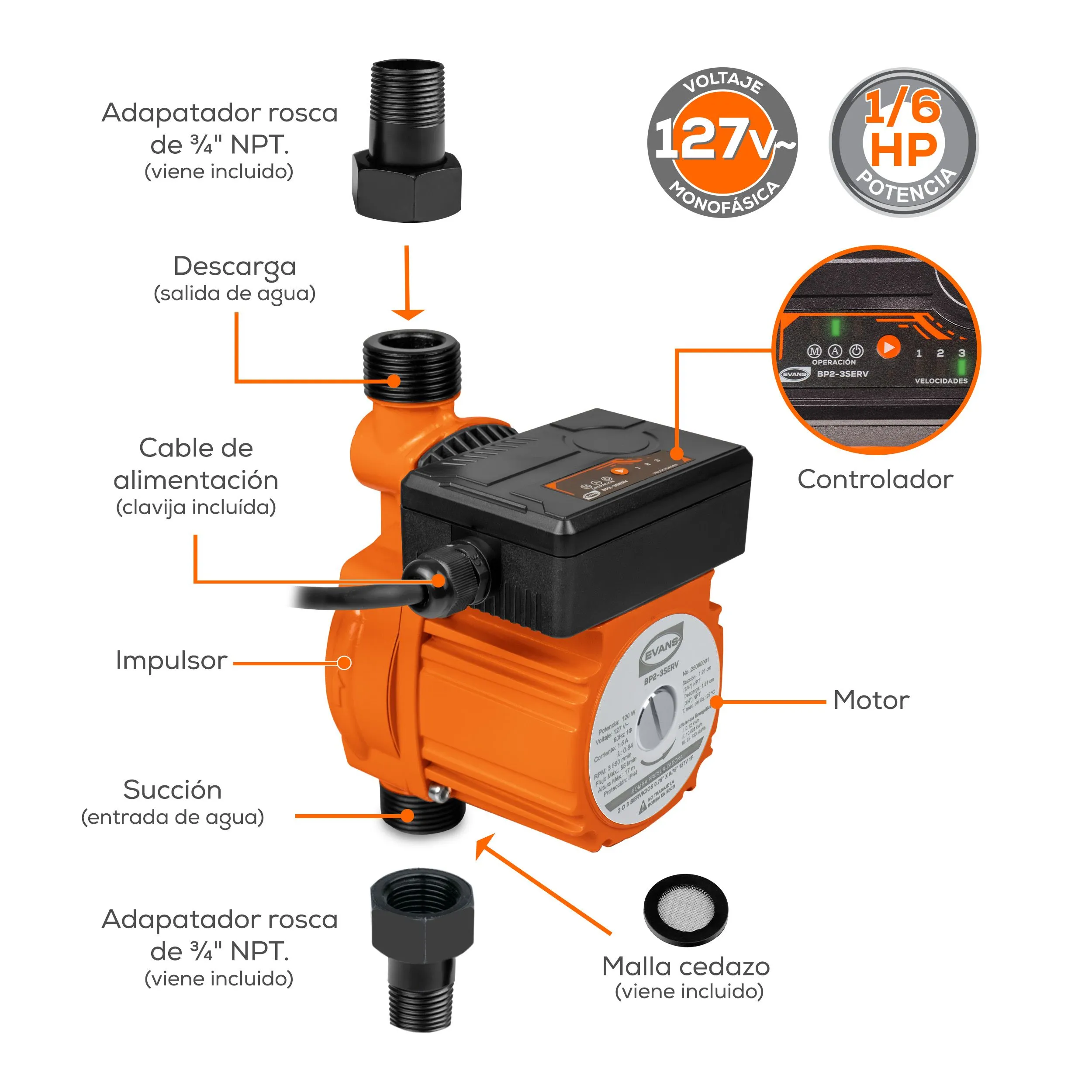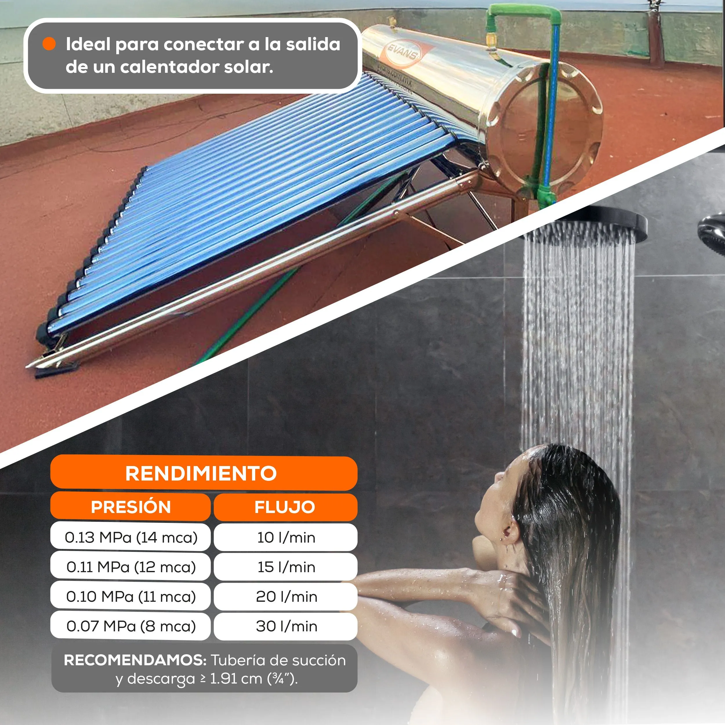 | Diámetro de descarga | 0.75 pulg |